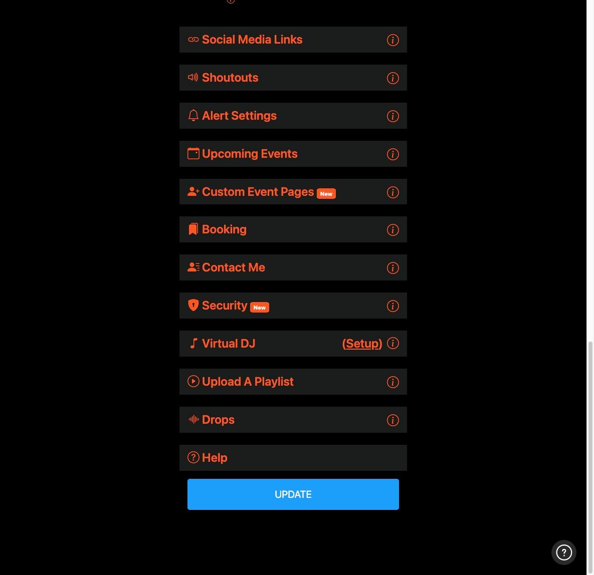 Getting StartedHow to Login and View your Settings How to Update Your Profile Picture How to Update Your Profile Background How to Add Your Short Bio How to Add Your Location How to Add Your Date Format Preference How to Update Your Song Request Disclaimer How to Add Your Emojis How to Add Your Social Media Links How to Add Your Upcoming Events How To Create Custom Event Pages Using the NoSongRequests.com App Getting PaidHow to Add a Payment Type How to Setup Verified Tips How to Configure Your Tip Settings How to Configure Your Song Request Settings How to Configure Your Shoutout Settings How to Configure Your Booking Settings How to Configure Your Contact Me Settings Getting ReadyHow to Print Your QR Code How to Share the DJ or Live Performer Page How to Upload a Playlist How to Configure Your Alert Settings How to Configure Your Karaoke Mode Settings How to Configure Your Virtual DJ Settings Setting up Password Protection on your Song Request Page Download The NoSongRequests.com DJ Drops Managing Song RequestsHow to Sort Requested Songs How to Filter Requested Songs How to Mark a Song as a Favorite How to Add a Comment to a Requested Song How to Mark a Song as Played How to Archive a Requested Song How to Listen to Song Requests How to View Details for a Requested Song How to View Lyrics for a Requested Song How to Share a Requested Song How to Export Requested Songs to DJ Software How to Copy Song Requests to DJ Software Managing Shoutout RequestsHow to View Shoutout Requests How to Send a Message to Requestor Prior to Shoutout How to Mark a Shoutout as Completed How to Archive a Shoutout Request FAQs for the Audience and FansHow to Make a Song Request How to View and Like Song Requests How to View Details for Requested Songs (Cover image, genre, energy level, etc.) How to View Lyrics for Requested Songs How to Listen to Requested Songs How to Add Requested Songs to Your Playlist How to Share Requested Songs with Your Friends How to Make a Shoutout Request How to Tip the DJ or Live Performer How to Inquire about Booking the DJ or Live Performer How to Contact the DJ or Live Performer How to View Upcoming Events for the DJ or Live Performer How to Follow the DJ or Live Performer on Social Media Download our Apps Today! ![]()