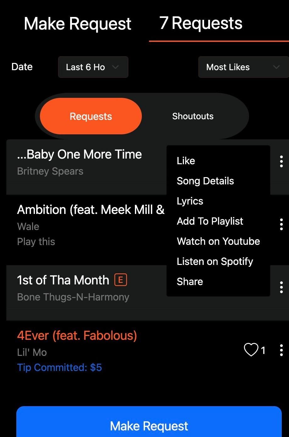 FAQs for DJs and Live PerformerGetting StartedHow to Login and View your Settings How to Update Your Profile Picture How to Update Your Profile Background How to Add Your Short Bio How to Add Your Location How to Add Your Date Format Preference How to Update Your Song Request Disclaimer How to Add Your Emojis How to Add Your Social Media Links How to Add Your Upcoming Events How To Create Custom Event Pages Using the NoSongRequests.com App Getting PaidHow to Add a Payment Type How to Setup Verified Tips How to Configure Your Tip Settings How to Configure Your Song Request Settings How to Configure Your Shoutout Settings How to Configure Your Booking Settings How to Configure Your Contact Me Settings Getting ReadyHow to Print Your QR Code How to Share the DJ or Live Performer Page How to Upload a Playlist How to Configure Your Alert Settings How to Configure Your Karaoke Mode Settings How to Configure Your Virtual DJ Settings Setting up Password Protection on your Song Request Page Download The NoSongRequests.com DJ Drops Managing Song RequestsHow to Sort Requested Songs How to Filter Requested Songs How to Mark a Song as a Favorite How to Add a Comment to a Requested Song How to Mark a Song as Played How to Archive a Requested Song How to Listen to Song Requests How to View Details for a Requested Song How to View Lyrics for a Requested Song How to Share a Requested Song How to Export Requested Songs to DJ Software How to Copy Song Requests to DJ Software Managing Shoutout RequestsHow to View Shoutout Requests How to Send a Message to Requestor Prior to Shoutout How to Mark a Shoutout as Completed How to Archive a Shoutout Request FAQs for the Audience and FansHow to Make a Song Request How to View and Like Song Requests How to View Details for Requested Songs (Cover image, genre, energy level, etc.) How to View Lyrics for Requested Songs How to Listen to Requested Songs How to Add Requested Songs to Your Playlist How to Share Requested Songs with Your Friends How to Make a Shoutout Request How to Tip the DJ or Live Performer How to Inquire about Booking the DJ or Live Performer How to Contact the DJ or Live Performer How to View Upcoming Events for the DJ or Live Performer How to Follow the DJ or Live Performer on Social Media Download our Apps Today! ![]()