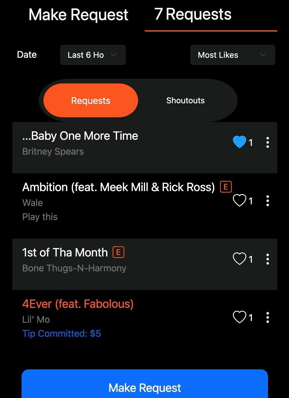 Getting StartedHow to Login and View your Settings How to Update Your Profile Picture How to Update Your Profile Background How to Add Your Short Bio How to Add Your Location How to Add Your Date Format Preference How to Update Your Song Request Disclaimer How to Add Your Emojis How to Add Your Social Media Links How to Add Your Upcoming Events How To Create Custom Event Pages Using the NoSongRequests.com App Getting PaidHow to Add a Payment Type How to Setup Verified Tips How to Configure Your Tip Settings How to Configure Your Song Request Settings How to Configure Your Shoutout Settings How to Configure Your Booking Settings How to Configure Your Contact Me Settings Getting ReadyHow to Print Your QR Code How to Share the DJ or Live Performer Page How to Upload a Playlist How to Configure Your Alert Settings How to Configure Your Karaoke Mode Settings How to Configure Your Virtual DJ Settings Setting up Password Protection on your Song Request Page Download The NoSongRequests.com DJ Drops Managing Song RequestsHow to Sort Requested Songs How to Filter Requested Songs How to Mark a Song as a Favorite How to Add a Comment to a Requested Song How to Mark a Song as Played How to Archive a Requested Song How to Listen to Song Requests How to View Details for a Requested Song How to View Lyrics for a Requested Song How to Share a Requested Song How to Export Requested Songs to DJ Software How to Copy Song Requests to DJ Software Managing Shoutout RequestsHow to View Shoutout Requests How to Send a Message to Requestor Prior to Shoutout How to Mark a Shoutout as Completed How to Archive a Shoutout Request FAQs for the Audience and FansHow to Make a Song Request How to View and Like Song Requests How to View Details for Requested Songs (Cover image, genre, energy level, etc.) How to View Lyrics for Requested Songs How to Listen to Requested Songs How to Add Requested Songs to Your Playlist How to Share Requested Songs with Your Friends How to Make a Shoutout Request How to Tip the DJ or Live Performer How to Inquire about Booking the DJ or Live Performer How to Contact the DJ or Live Performer How to View Upcoming Events for the DJ or Live Performer How to Follow the DJ or Live Performer on Social Media Download our Apps Today! ![]()