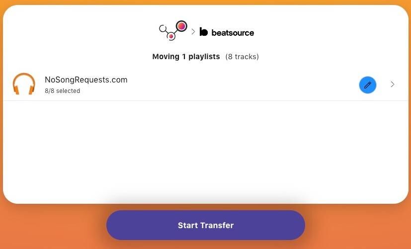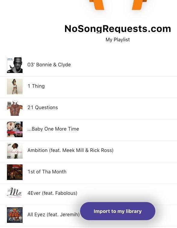 10. When you are done transferring the songs to your playlist, just hit the back button to go back to NoSongRequests.com