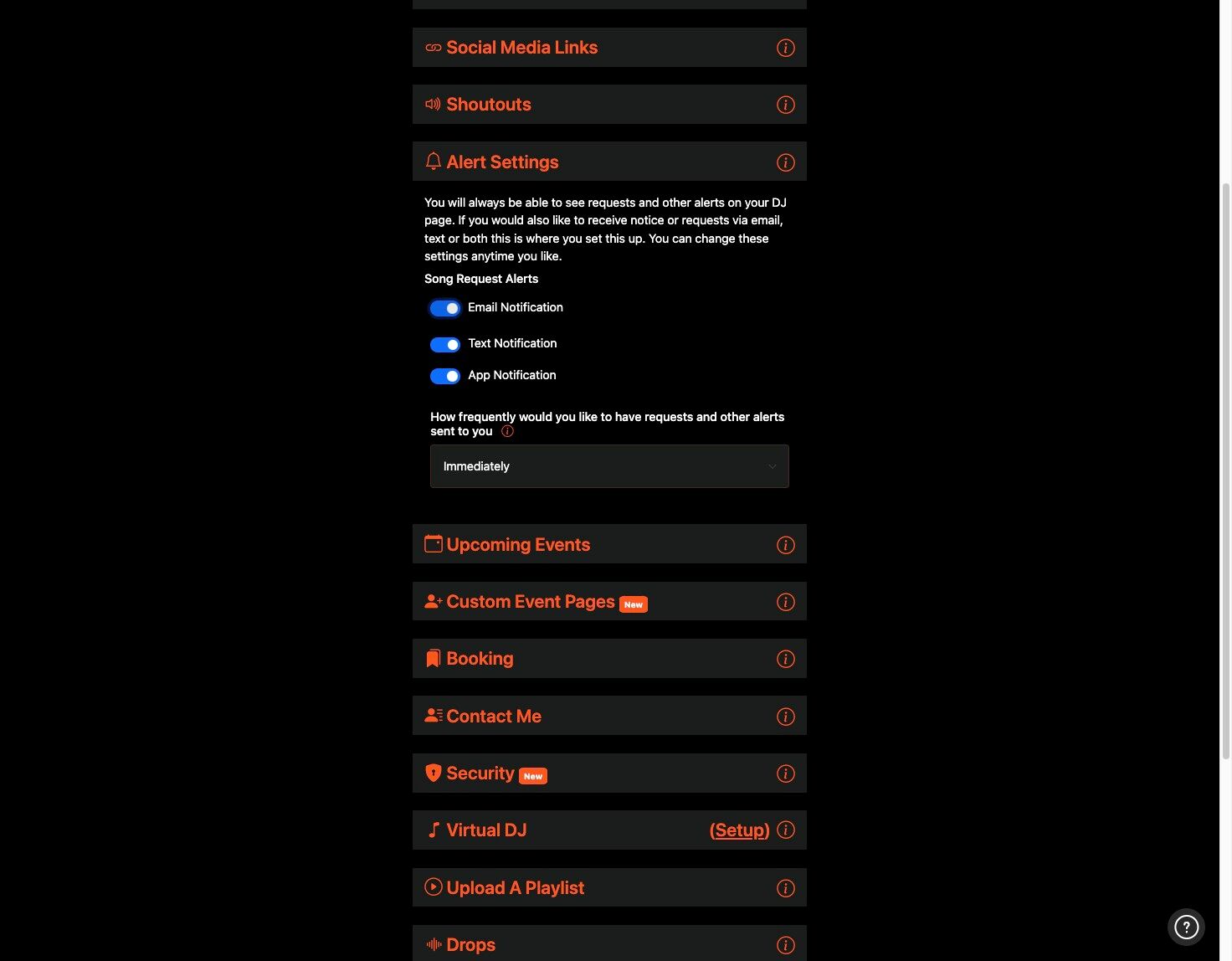 Getting StartedHow to Login and View your Settings How to Update Your Profile Picture How to Update Your Profile Background How to Add Your Short Bio How to Add Your Location How to Add Your Date Format Preference How to Update Your Song Request Disclaimer How to Add Your Emojis How to Add Your Social Media Links How to Add Your Upcoming Events How To Create Custom Event Pages Using the NoSongRequests.com App Getting PaidHow to Add a Payment Type How to Setup Verified Tips How to Configure Your Tip Settings How to Configure Your Song Request Settings How to Configure Your Shoutout Settings How to Configure Your Booking Settings How to Configure Your Contact Me Settings Getting ReadyHow to Print Your QR Code How to Share the DJ or Live Performer Page How to Upload a Playlist How to Configure Your Alert Settings How to Configure Your Karaoke Mode Settings How to Configure Your Virtual DJ Settings Setting up Password Protection on your Song Request Page Download The NoSongRequests.com DJ Drops Managing Song RequestsHow to Sort Requested Songs How to Filter Requested Songs How to Mark a Song as a Favorite How to Add a Comment to a Requested Song How to Mark a Song as Played How to Archive a Requested Song How to Listen to Song Requests How to View Details for a Requested Song How to View Lyrics for a Requested Song How to Share a Requested Song How to Export Requested Songs to DJ Software How to Copy Song Requests to DJ Software Managing Shoutout RequestsHow to View Shoutout Requests How to Send a Message to Requestor Prior to Shoutout How to Mark a Shoutout as Completed How to Archive a Shoutout Request FAQs for the Audience and FansHow to Make a Song Request How to View and Like Song Requests How to View Details for Requested Songs (Cover image, genre, energy level, etc.) How to View Lyrics for Requested Songs How to Listen to Requested Songs How to Add Requested Songs to Your Playlist How to Share Requested Songs with Your Friends How to Make a Shoutout Request How to Tip the DJ or Live Performer How to Inquire about Booking the DJ or Live Performer How to Contact the DJ or Live Performer How to View Upcoming Events for the DJ or Live Performer How to Follow the DJ or Live Performer on Social Media Download our Apps Today! ![]()