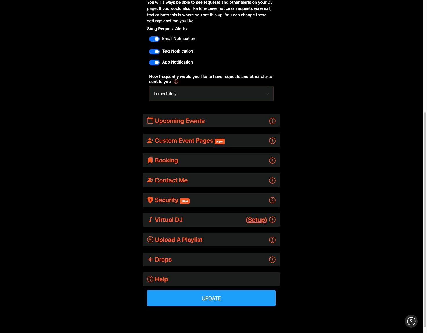 FAQs for DJs and Live PerformerGetting StartedHow to Login and View your Settings How to Update Your Profile Picture How to Update Your Profile Background How to Add Your Short Bio How to Add Your Location How to Add Your Date Format Preference How to Update Your Song Request Disclaimer How to Add Your Emojis How to Add Your Social Media Links How to Add Your Upcoming Events How To Create Custom Event Pages Using the NoSongRequests.com App Getting PaidHow to Add a Payment Type How to Setup Verified Tips How to Configure Your Tip Settings How to Configure Your Song Request Settings How to Configure Your Shoutout Settings How to Configure Your Booking Settings How to Configure Your Contact Me Settings Getting ReadyHow to Print Your QR Code How to Share the DJ or Live Performer Page How to Upload a Playlist How to Configure Your Alert Settings How to Configure Your Karaoke Mode Settings How to Configure Your Virtual DJ Settings Setting up Password Protection on your Song Request Page Download The NoSongRequests.com DJ Drops Managing Song RequestsHow to Sort Requested Songs How to Filter Requested Songs How to Mark a Song as a Favorite How to Add a Comment to a Requested Song How to Mark a Song as Played How to Archive a Requested Song How to Listen to Song Requests How to View Details for a Requested Song How to View Lyrics for a Requested Song How to Share a Requested Song How to Export Requested Songs to DJ Software How to Copy Song Requests to DJ Software Managing Shoutout RequestsHow to View Shoutout Requests How to Send a Message to Requestor Prior to Shoutout How to Mark a Shoutout as Completed How to Archive a Shoutout Request FAQs for the Audience and FansHow to Make a Song Request How to View and Like Song Requests How to View Details for Requested Songs (Cover image, genre, energy level, etc.) How to View Lyrics for Requested Songs How to Listen to Requested Songs How to Add Requested Songs to Your Playlist How to Share Requested Songs with Your Friends How to Make a Shoutout Request How to Tip the DJ or Live Performer How to Inquire about Booking the DJ or Live Performer How to Contact the DJ or Live Performer How to View Upcoming Events for the DJ or Live Performer How to Follow the DJ or Live Performer on Social Media Download our Apps Today! ![]()