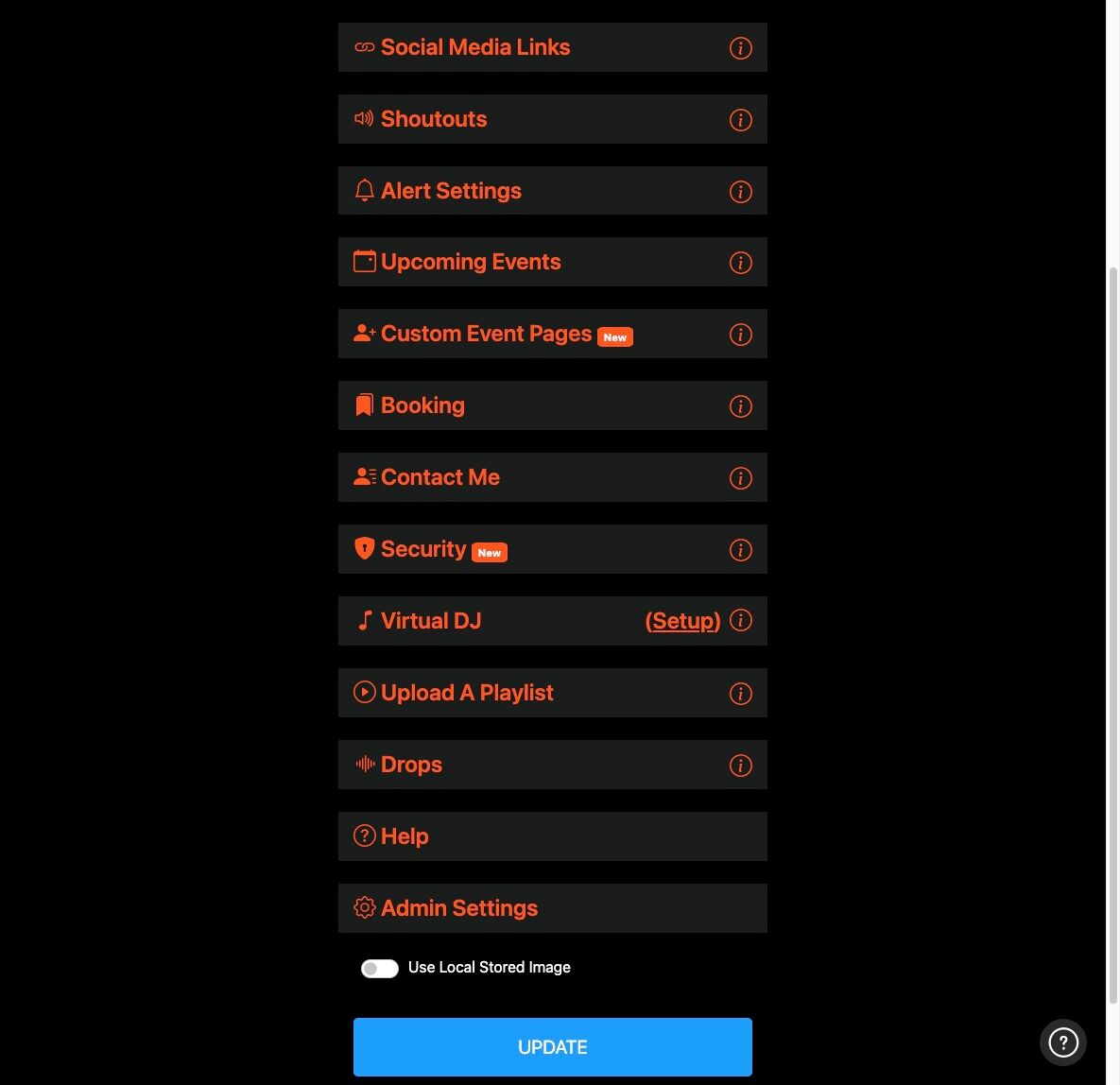 Getting StartedHow to Login and View your Settings How to Update Your Profile Picture How to Update Your Profile Background How to Add Your Short Bio How to Add Your Location How to Add Your Date Format Preference How to Update Your Song Request Disclaimer How to Add Your Emojis How to Add Your Social Media Links How to Add Your Upcoming Events How To Create Custom Event Pages Using the NoSongRequests.com App Getting PaidHow to Add a Payment Type How to Setup Verified Tips How to Configure Your Tip Settings How to Configure Your Song Request Settings How to Configure Your Shoutout Settings How to Configure Your Booking Settings How to Configure Your Contact Me Settings Getting ReadyHow to Print Your QR Code How to Share the DJ or Live Performer Page How to Upload a Playlist How to Configure Your Alert Settings How to Configure Your Karaoke Mode Settings How to Configure Your Virtual DJ Settings Setting up Password Protection on your Song Request Page Download The NoSongRequests.com DJ Drops Managing Song RequestsHow to Sort Requested Songs How to Filter Requested Songs How to Mark a Song as a Favorite How to Add a Comment to a Requested Song How to Mark a Song as Played How to Archive a Requested Song How to Listen to Song Requests How to View Details for a Requested Song How to View Lyrics for a Requested Song How to Share a Requested Song How to Export Requested Songs to DJ Software How to Copy Song Requests to DJ Software Managing Shoutout RequestsHow to View Shoutout Requests How to Send a Message to Requestor Prior to Shoutout How to Mark a Shoutout as Completed How to Archive a Shoutout Request FAQs for the Audience and FansHow to Make a Song Request How to View and Like Song Requests How to View Details for Requested Songs (Cover image, genre, energy level, etc.) How to View Lyrics for Requested Songs How to Listen to Requested Songs How to Add Requested Songs to Your Playlist How to Share Requested Songs with Your Friends How to Make a Shoutout Request How to Tip the DJ or Live Performer How to Inquire about Booking the DJ or Live Performer How to Contact the DJ or Live Performer How to View Upcoming Events for the DJ or Live Performer How to Follow the DJ or Live Performer on Social Media Download our Apps Today! ![]()