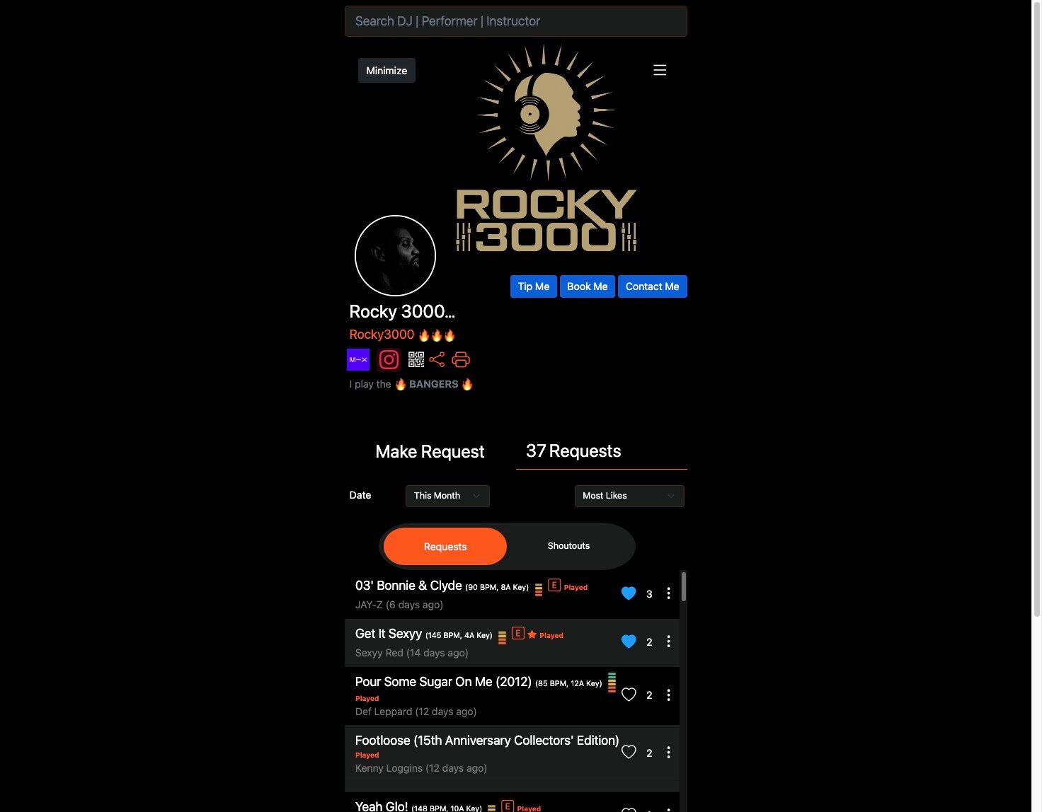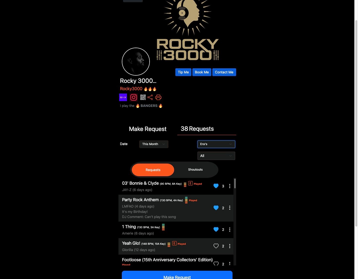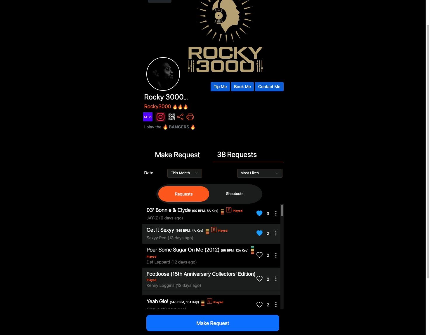 FAQs for DJs and Live PerformerGetting StartedHow to Login and View your Settings How to Update Your Profile Picture How to Update Your Profile Background How to Add Your Short Bio How to Add Your Location How to Add Your Date Format Preference How to Update Your Song Request Disclaimer How to Add Your Emojis How to Add Your Social Media Links How to Add Your Upcoming Events How To Create Custom Event Pages Using the NoSongRequests.com App Getting PaidHow to Add a Payment Type How to Setup Verified Tips How to Configure Your Tip Settings How to Configure Your Song Request Settings How to Configure Your Shoutout Settings How to Configure Your Booking Settings How to Configure Your Contact Me Settings Getting ReadyHow to Print Your QR Code How to Share the DJ or Live Performer Page How to Upload a Playlist How to Configure Your Alert Settings How to Configure Your Karaoke Mode Settings How to Configure Your Virtual DJ Settings Setting up Password Protection on your Song Request Page Download The NoSongRequests.com DJ Drops Managing Song RequestsHow to Sort Requested Songs How to Filter Requested Songs How to Mark a Song as a Favorite How to Add a Comment to a Requested Song How to Mark a Song as Played How to Archive a Requested Song How to Listen to Song Requests How to View Details for a Requested Song How to View Lyrics for a Requested Song How to Share a Requested Song How to Export Requested Songs to DJ Software How to Copy Song Requests to DJ Software Managing Shoutout RequestsHow to View Shoutout Requests How to Send a Message to Requestor Prior to Shoutout How to Mark a Shoutout as Completed How to Archive a Shoutout Request FAQs for the Audience and FansHow to Make a Song Request How to View and Like Song Requests How to View Details for Requested Songs (Cover image, genre, energy level, etc.) How to View Lyrics for Requested Songs How to Listen to Requested Songs How to Add Requested Songs to Your Playlist How to Share Requested Songs with Your Friends How to Make a Shoutout Request How to Tip the DJ or Live Performer How to Inquire about Booking the DJ or Live Performer How to Contact the DJ or Live Performer How to View Upcoming Events for the DJ or Live Performer How to Follow the DJ or Live Performer on Social Media Download our Apps Today! ![]()