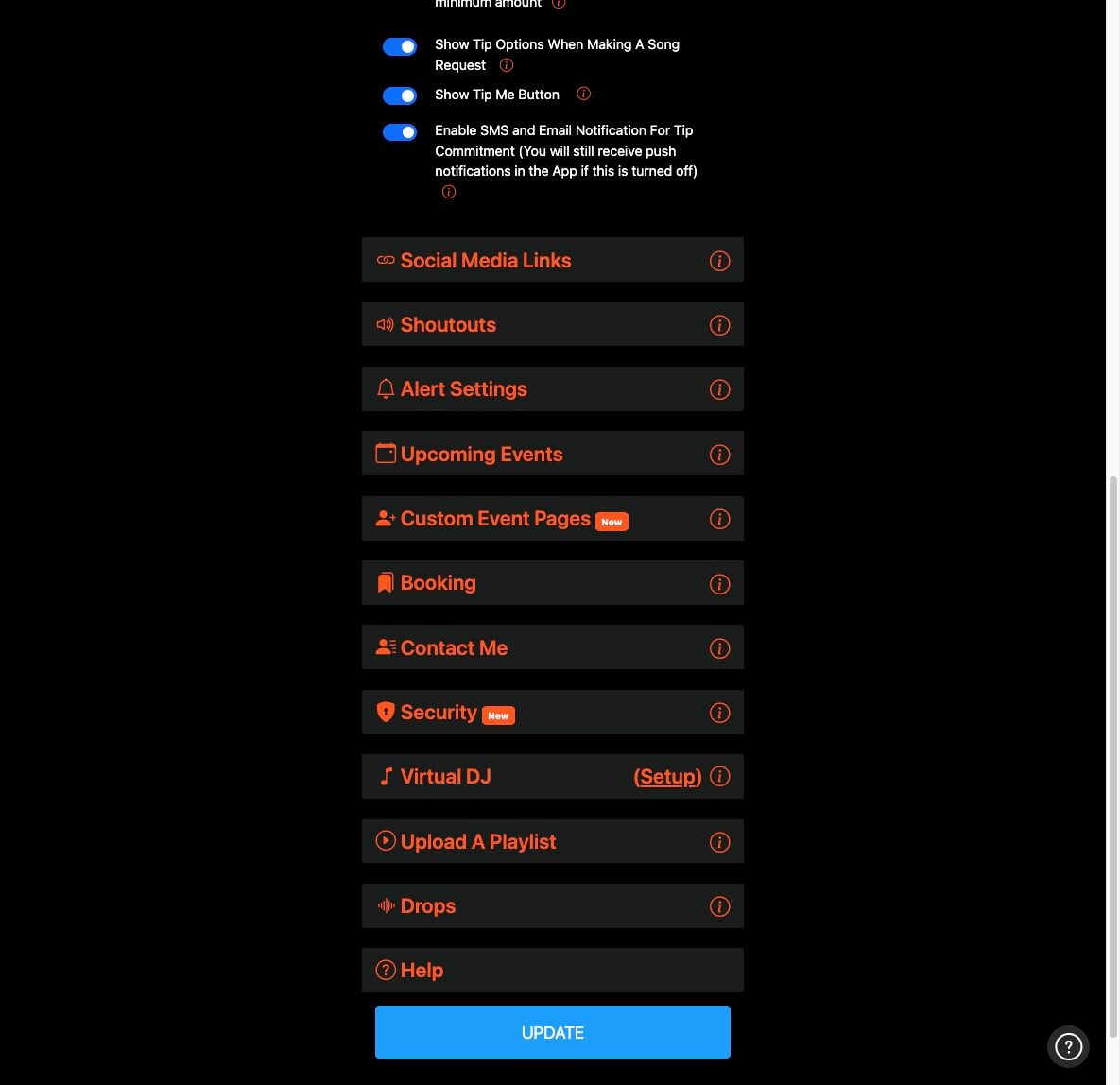 7. This will show the audience an option to tip you when they make a song request. We recommend turning this option on to increase your changes of being tipped.