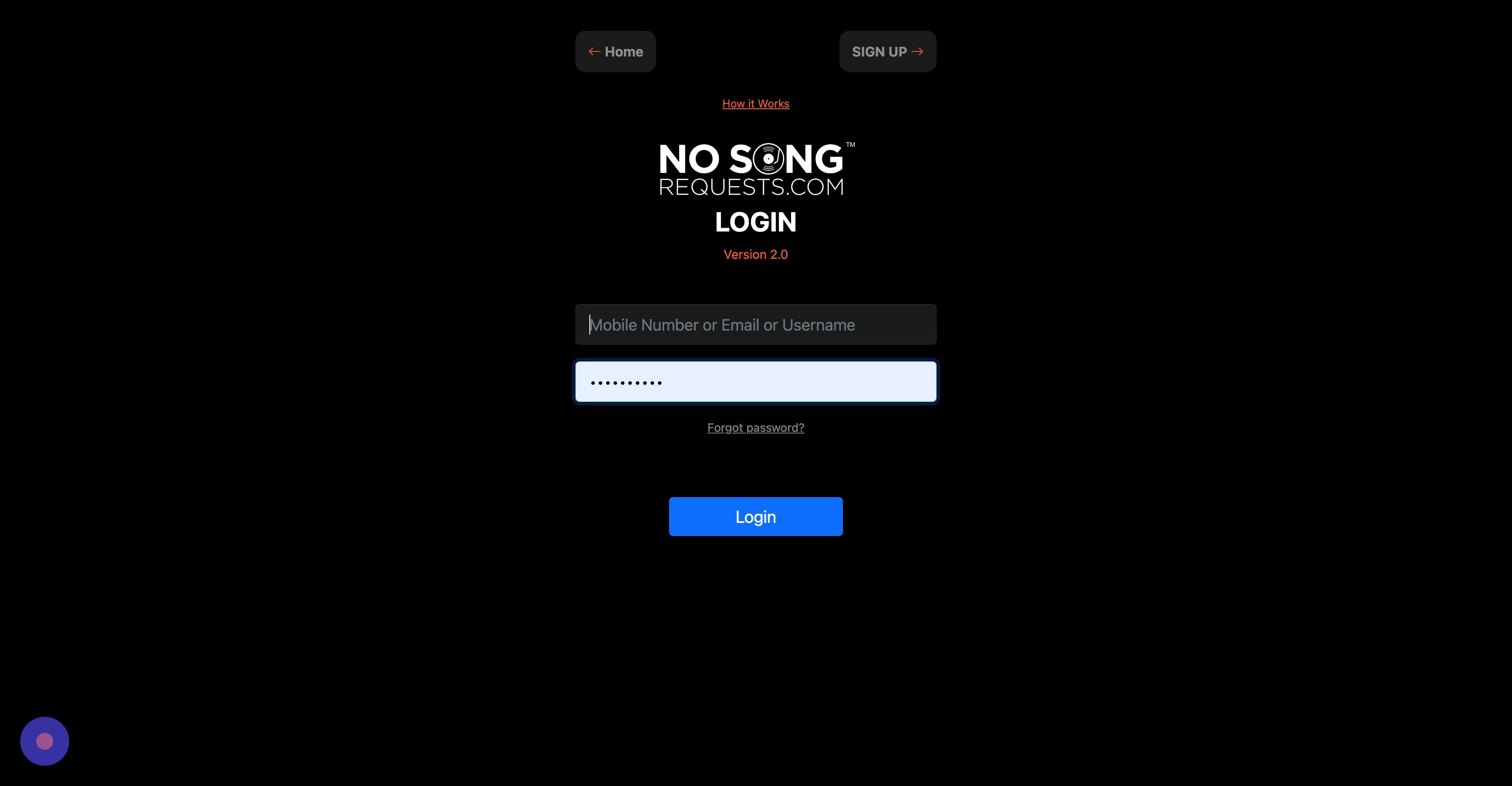 1. Navigate to https://app.nosongrequests.com/login/settings