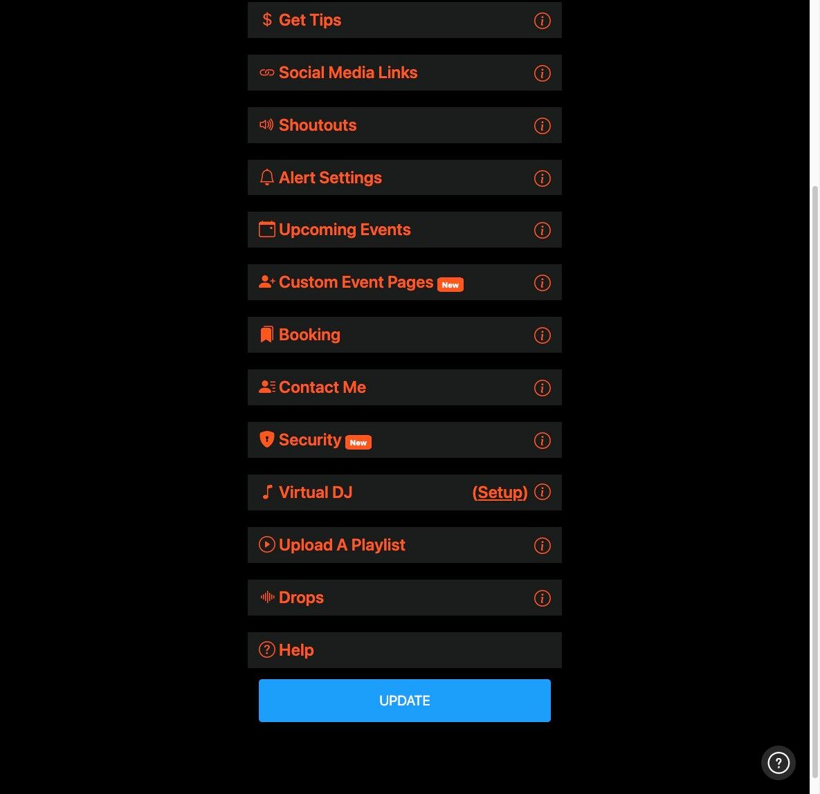 Getting StartedHow to Login and View your Settings How to Update Your Profile Picture How to Update Your Profile Background How to Add Your Short Bio How to Add Your Location How to Add Your Date Format Preference How to Update Your Song Request Disclaimer How to Add Your Emojis How to Add Your Social Media Links How to Add Your Upcoming Events How To Create Custom Event Pages Using the NoSongRequests.com App Getting PaidHow to Add a Payment Type How to Setup Verified Tips How to Configure Your Tip Settings How to Configure Your Song Request Settings How to Configure Your Shoutout Settings How to Configure Your Booking Settings How to Configure Your Contact Me Settings Getting ReadyHow to Print Your QR Code How to Share the DJ or Live Performer Page How to Upload a Playlist How to Configure Your Alert Settings How to Configure Your Karaoke Mode Settings How to Configure Your Virtual DJ Settings Setting up Password Protection on your Song Request Page Download The NoSongRequests.com DJ Drops Managing Song RequestsHow to Sort Requested Songs How to Filter Requested Songs How to Mark a Song as a Favorite How to Add a Comment to a Requested Song How to Mark a Song as Played How to Archive a Requested Song How to Listen to Song Requests How to View Details for a Requested Song How to View Lyrics for a Requested Song How to Share a Requested Song How to Export Requested Songs to DJ Software How to Copy Song Requests to DJ Software Managing Shoutout RequestsHow to View Shoutout Requests How to Send a Message to Requestor Prior to Shoutout How to Mark a Shoutout as Completed How to Archive a Shoutout Request FAQs for the Audience and FansHow to Make a Song Request How to View and Like Song Requests How to View Details for Requested Songs (Cover image, genre, energy level, etc.) How to View Lyrics for Requested Songs How to Listen to Requested Songs How to Add Requested Songs to Your Playlist How to Share Requested Songs with Your Friends How to Make a Shoutout Request How to Tip the DJ or Live Performer How to Inquire about Booking the DJ or Live Performer How to Contact the DJ or Live Performer How to View Upcoming Events for the DJ or Live Performer How to Follow the DJ or Live Performer on Social Media Download our Apps Today! ![]()