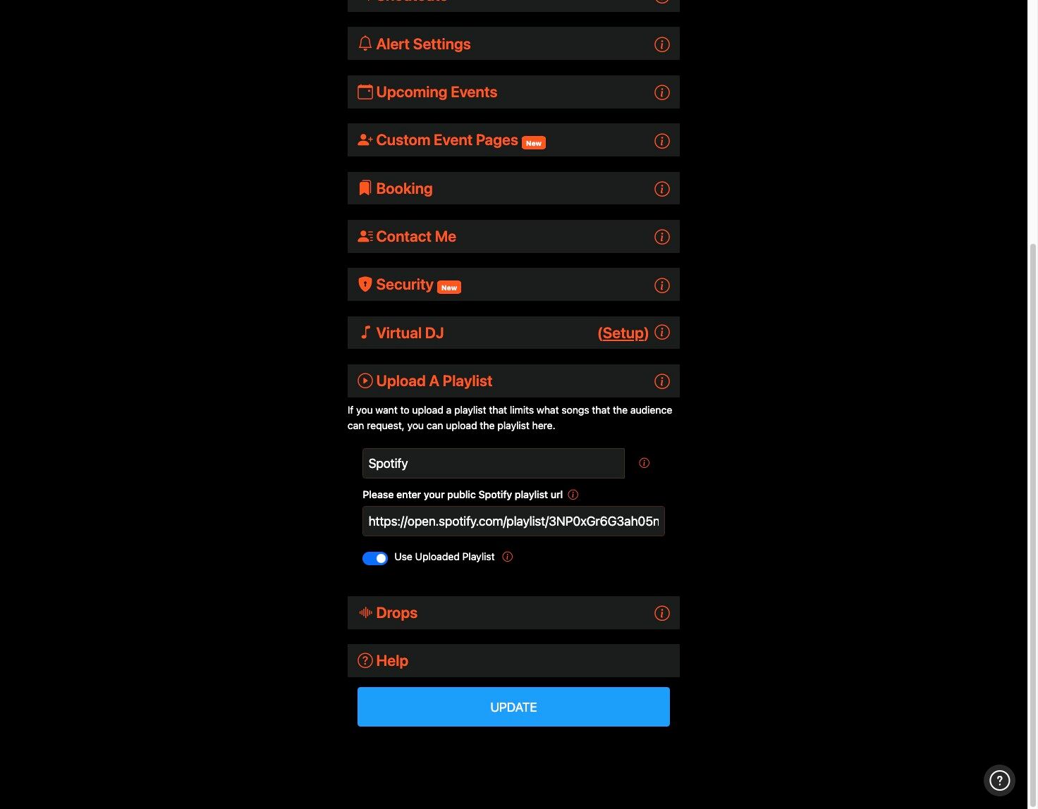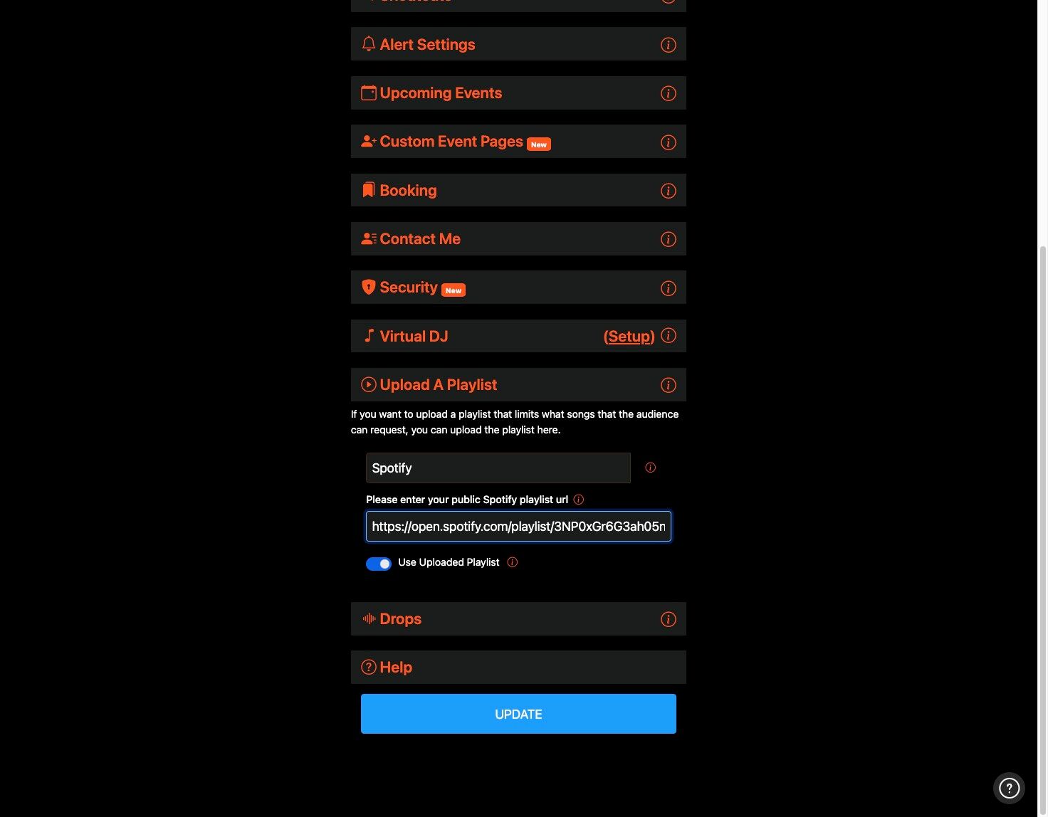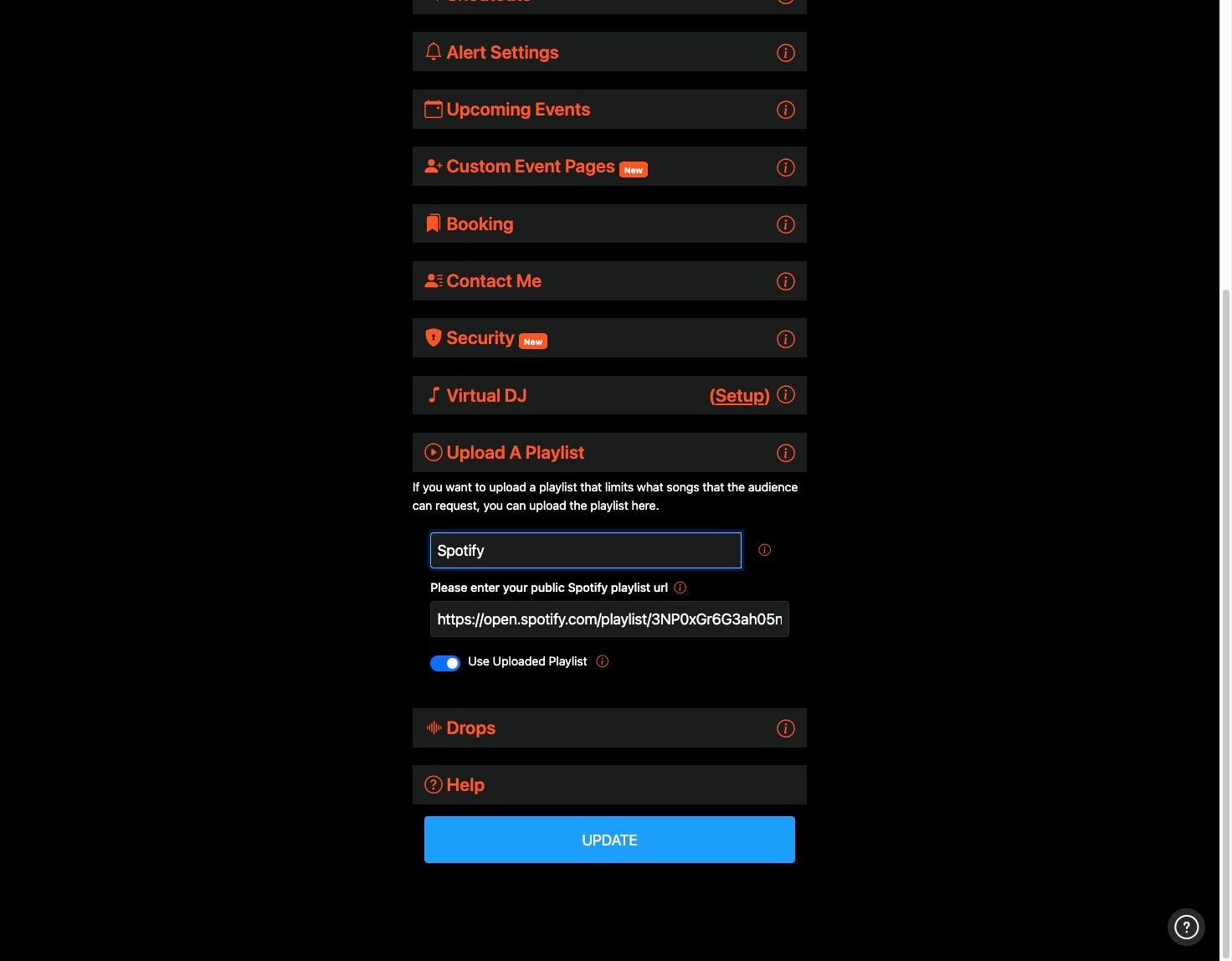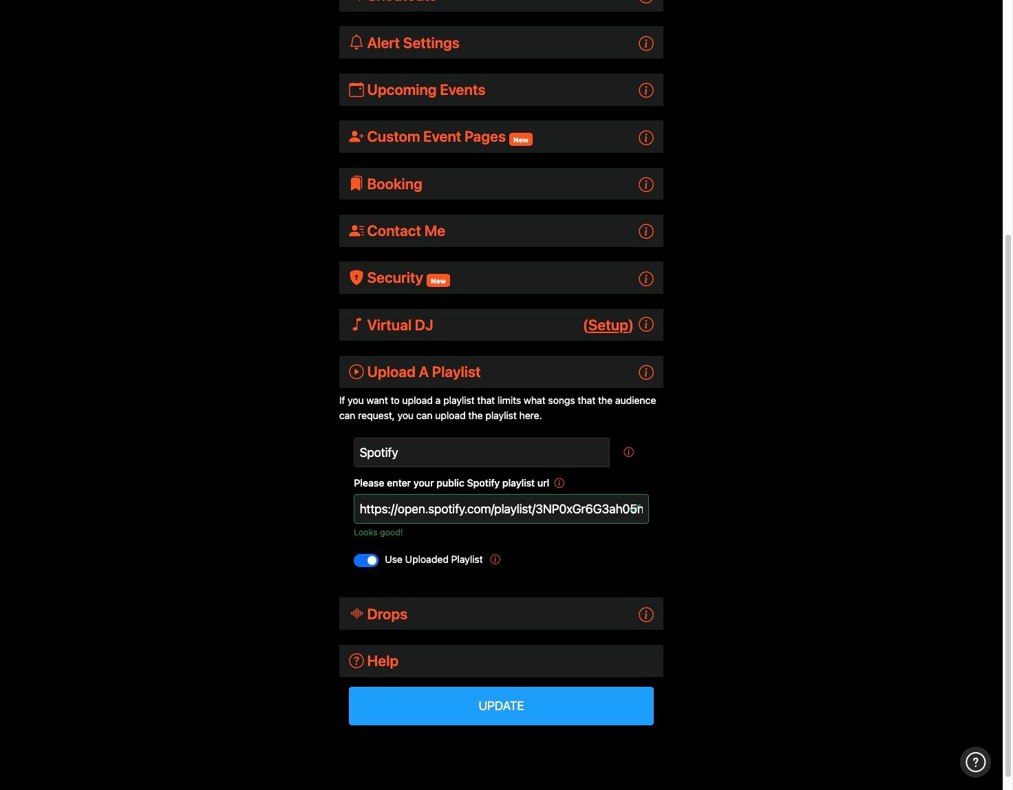 8. Now, when the audience goes to your song request page they will see the Select Song from DJ Playlist option